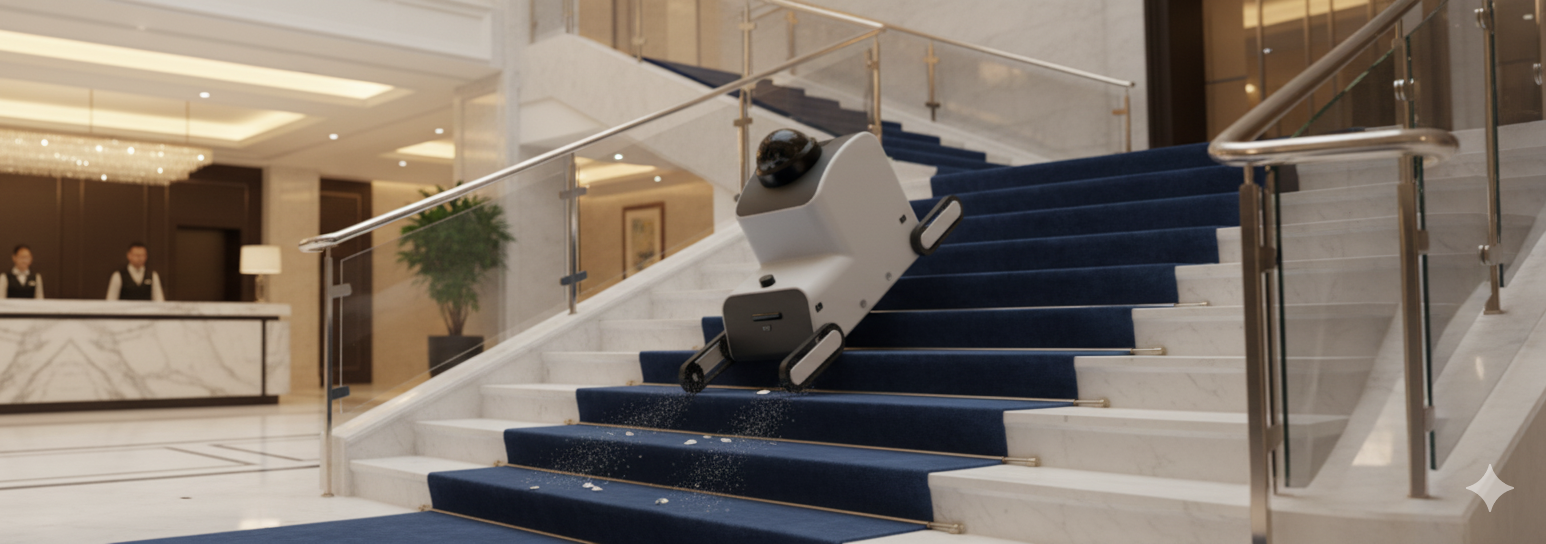 Vac Droid is a rugged, intelligent autonomous cleaning robot built for harsh industrial environments. Designed for construction sites, warehouses, factories, and large facilities, it handles dust, debris, and uneven terrain and stair climbing with ease.