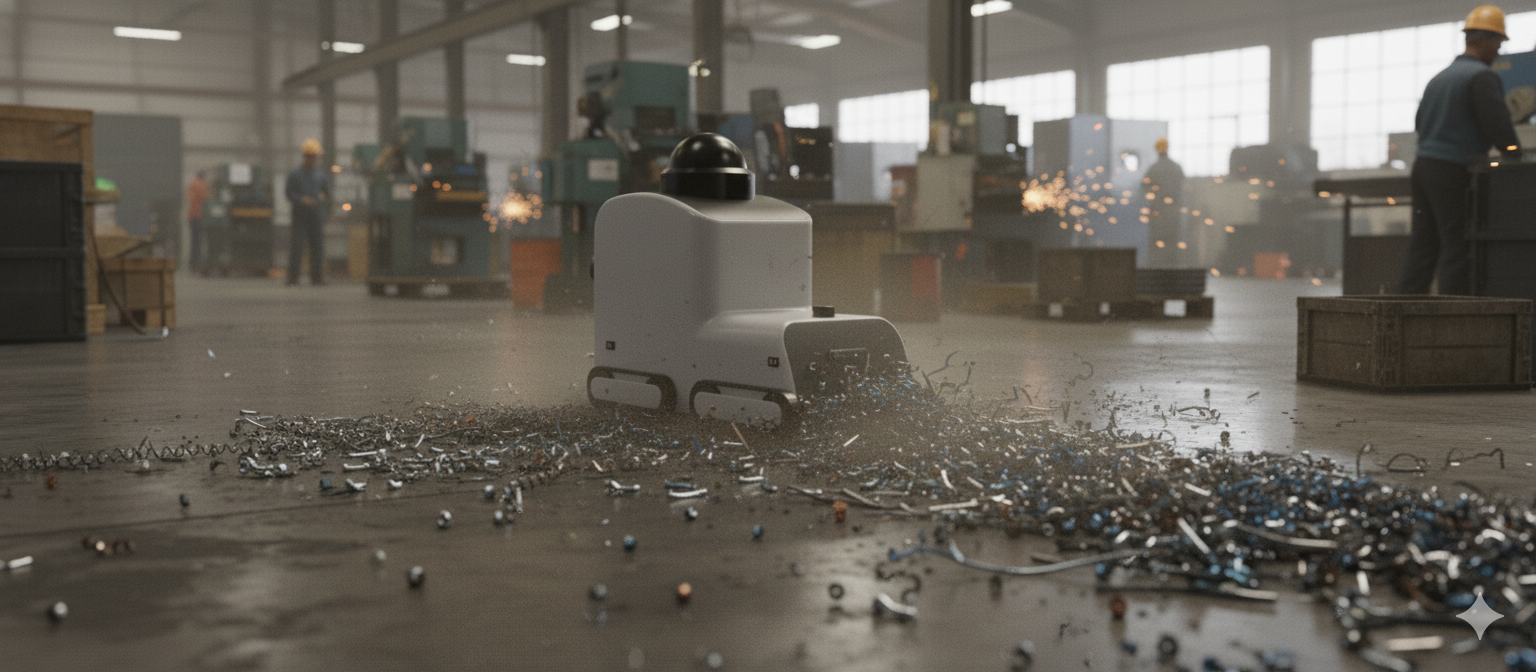 Metal chips, industrial dust, production scrap, and heavy-duty floor contamination.
